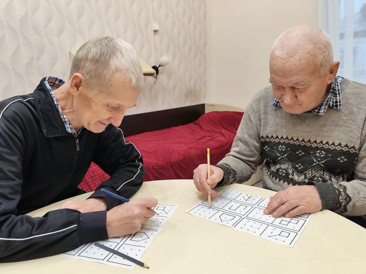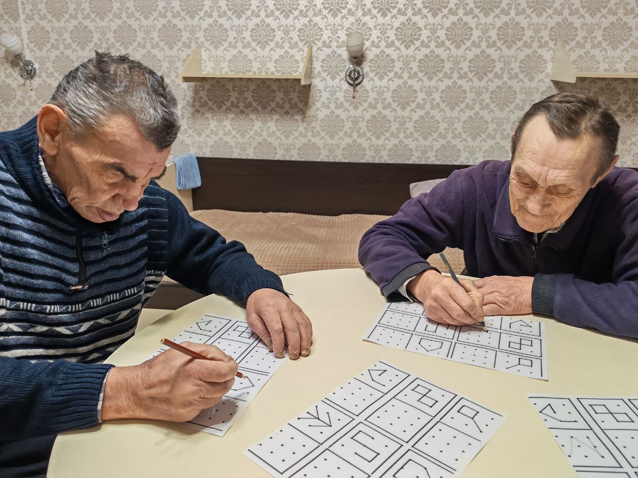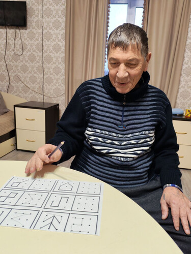 Для профилактики деменции в ГАУ СО " Адоевщинский дом - интернат для престарелых и инвалидов "  на индивидуальных занятиях психолога проводились диагностические методики и различные коррекционные упражнения. Особенно пожилым людям понравились такие методики  как "Головоломка"  и "Соединение по точкам". С помощью этих рисуночных методик раскрывается не только эмоциональный мир получателей социальных услуг, но и оценивалось их когнитивное состояние. Для активизации мыслительной деятельности психолог провела коррекционное упражнение "Назови животное и цифру". В этом упражнении тренируется глазомер и мелкая моторика пальцев рук, закрепляется  порядковый и обратный счёт, улучшаются психические процессы пожилых людей. ( внимание, память, мышление, восприятие).