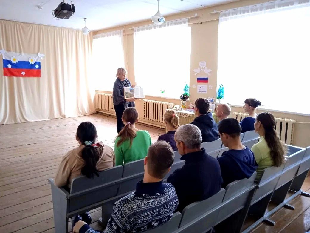 Сегодня в библиотеке с. Вязовка прошла беседа для получателей социальных услуг ГАУ СО "Адоевщинский дом-интернат", посвященная Дню народного единства.
