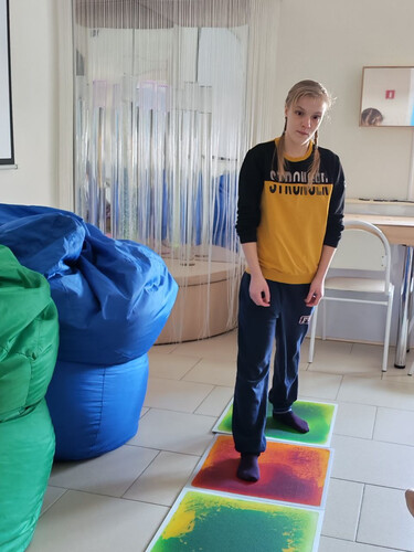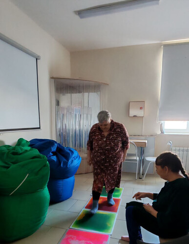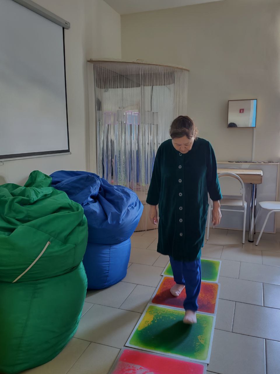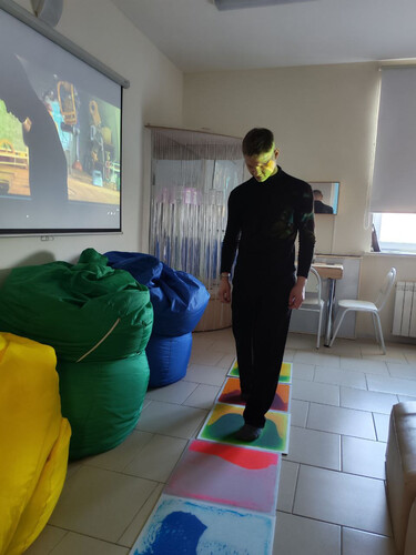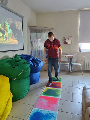 В ГАУ СО " Адоевщинский дом -  интернат для престарелых и инвалидов" наши подопечные в комнате психологической разгрузки ходили по гелевым плиткам. Такой метод очень полезен для снятия стресса, успокоения, стимуляции визуального и тактильного восприятия. Сенсорные плитки способствуют развитию крупной моторики, баланса, координации и зрительного восприятия.