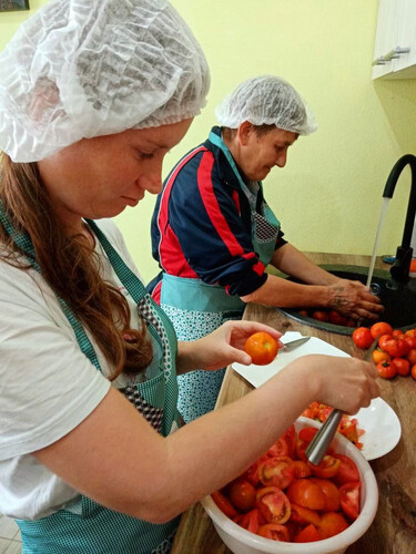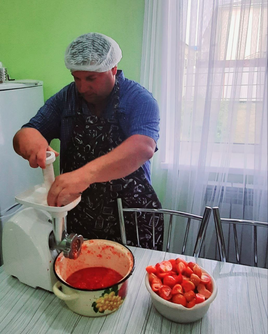 На занятии в макете однокомнатной квартиры, получатели социальных услуг ГАУ СО "Адоевщинский дом-интернат для престарелых и инвалидов", сварили томатный сок. Результат впечатлил – самодельный сок оказался не хуже магазинного. Домашнее консервирование возвращает особое ощущение уюта: это семейная традиция, в которую вкладывается тепло рук.